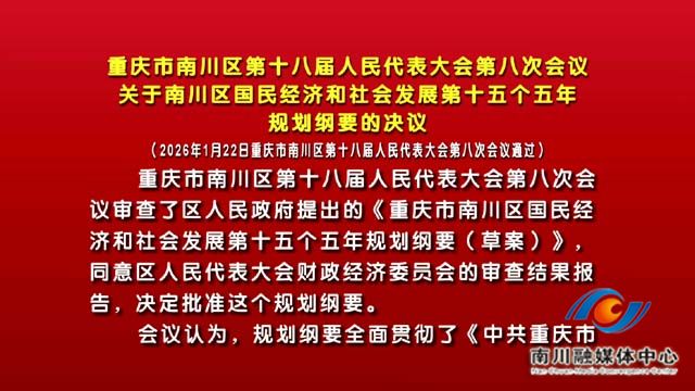 重庆市南川区第十八届人民代表大会第八次会议关于南川区2025年国民经济和社会发展计划执行情况与2026年国民经济和社会发展计划的决议
