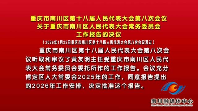 重庆市南川区第十八届人民代表大会第八次会议关于重庆市南川区人民代表大会常务委员会工作报告的决议