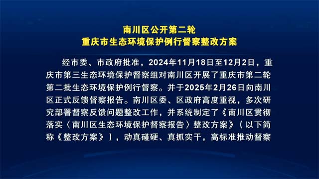 南川区公开第二轮重庆市生态环境保护例行督察整改方案