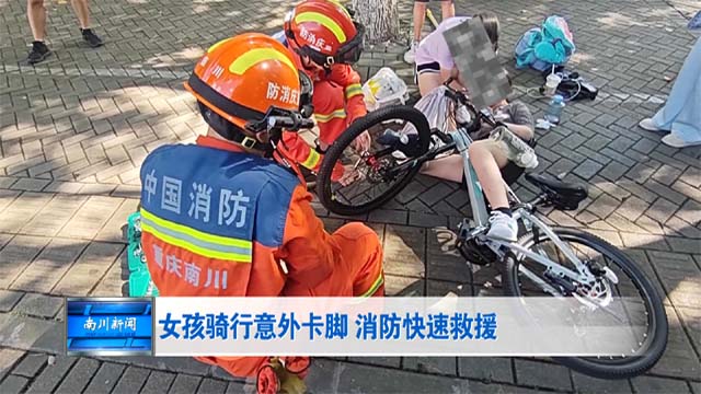 女孩骑行意外卡脚 消防快速救援